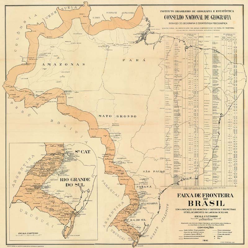 Faixa de Fronteira do Brasil com a indicação dos municípios e distritos e respectivas sedes, ocorrentes na largura de 150 KM; Nilo Porpino; 1941.
