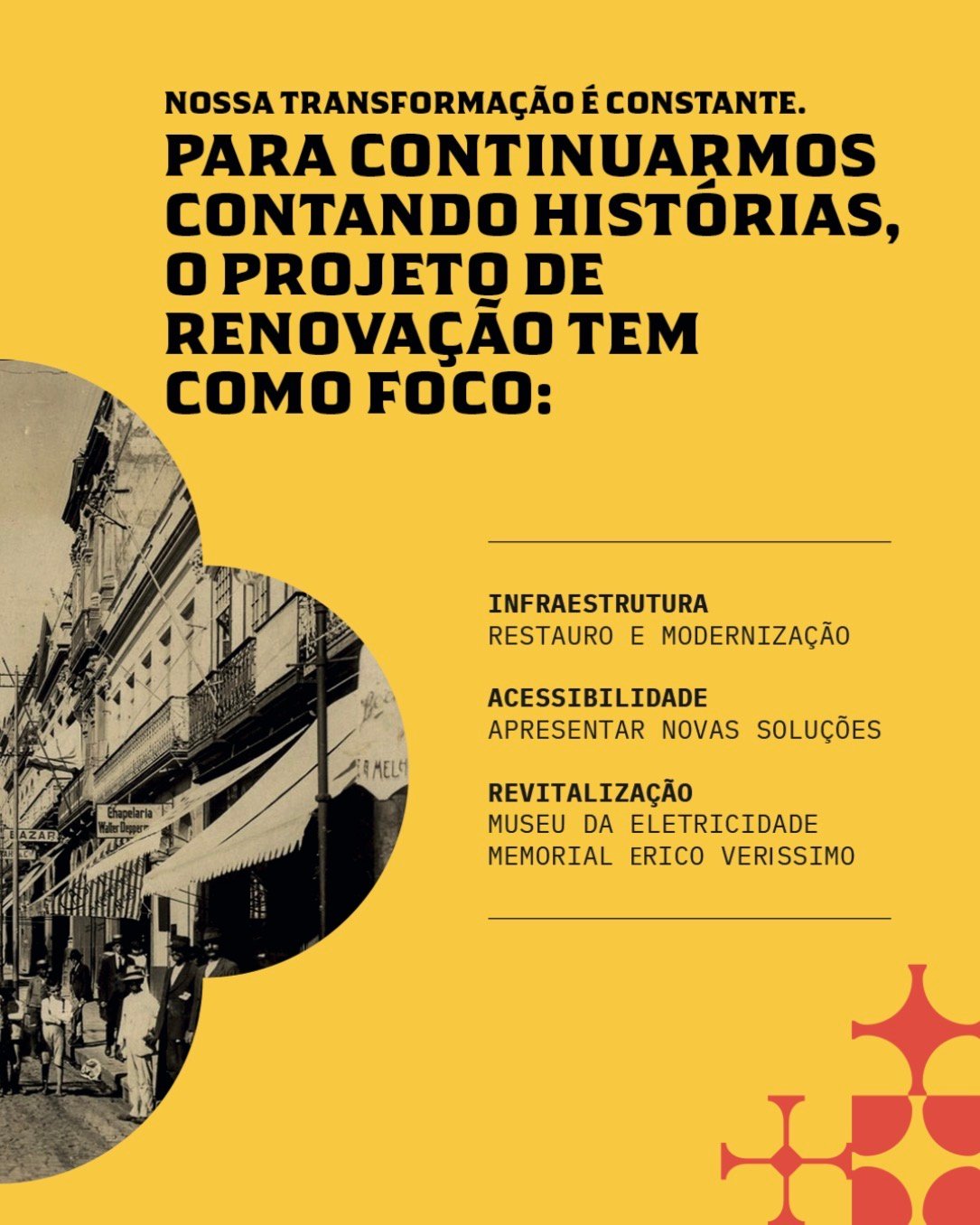 Em 2026, o prédio do Espaço Força e Luz completa 100 anos sendo um marco no coração de Porto Alegre. Para celebrar esse centenário,iniciamos um projeto de renovação que une a preservação do patrimônio à modernização de nossa infraestrutura, acessibilidade e espaços culturais, como o Museu da Eletricidade e o Memorial Érico Veríssimo.