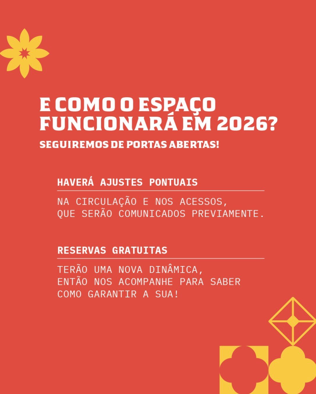 Seguiremos de portas abertas durante as obras, com ajustes pontuais para garantir a melhor experiência.