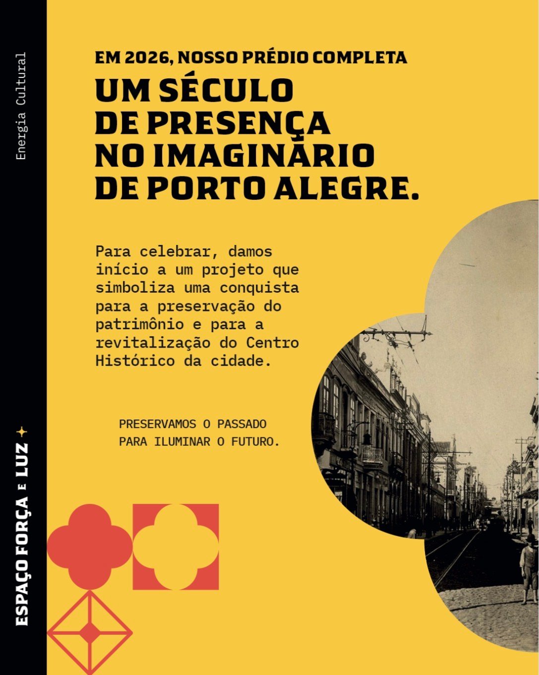 Em 2026, o prédio do Espaço Força e Luz completa 100 anos sendo um marco no coração de Porto Alegre. Para celebrar esse centenário,iniciamos um projeto de renovação que une a preservação do patrimônio à modernização de nossa infraestrutura, acessibilidade e espaços culturais, como o Museu da Eletricidade e o Memorial Érico Veríssimo.